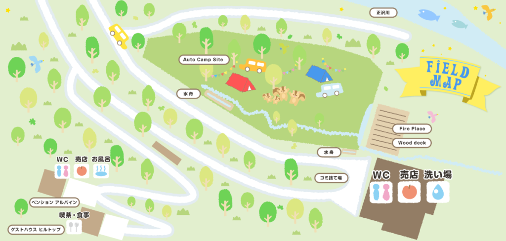 私達は、トイレが近い、お風呂に何回も入りたい、電波があるところなどを基準に、アルパイン下のサイトを選びました。